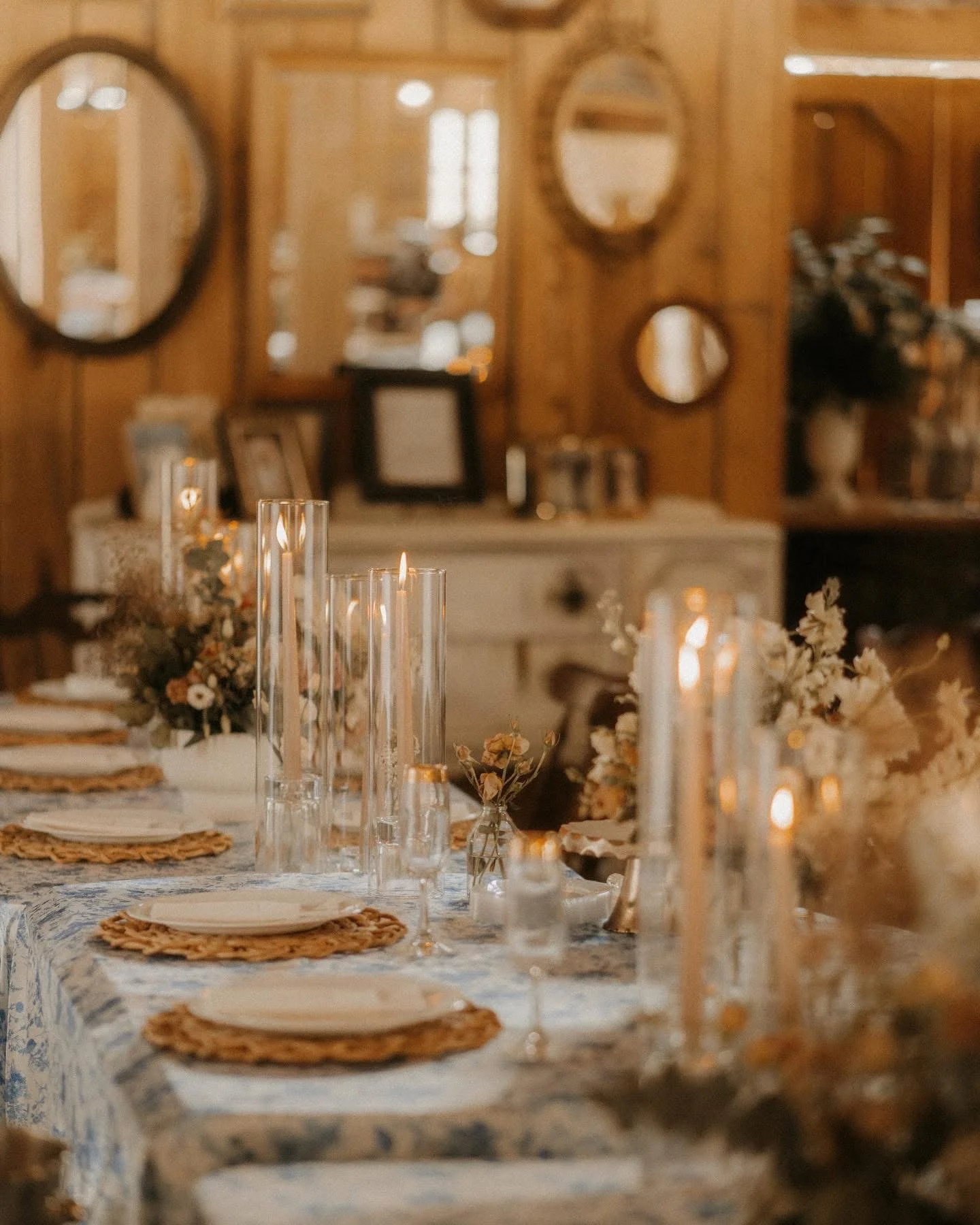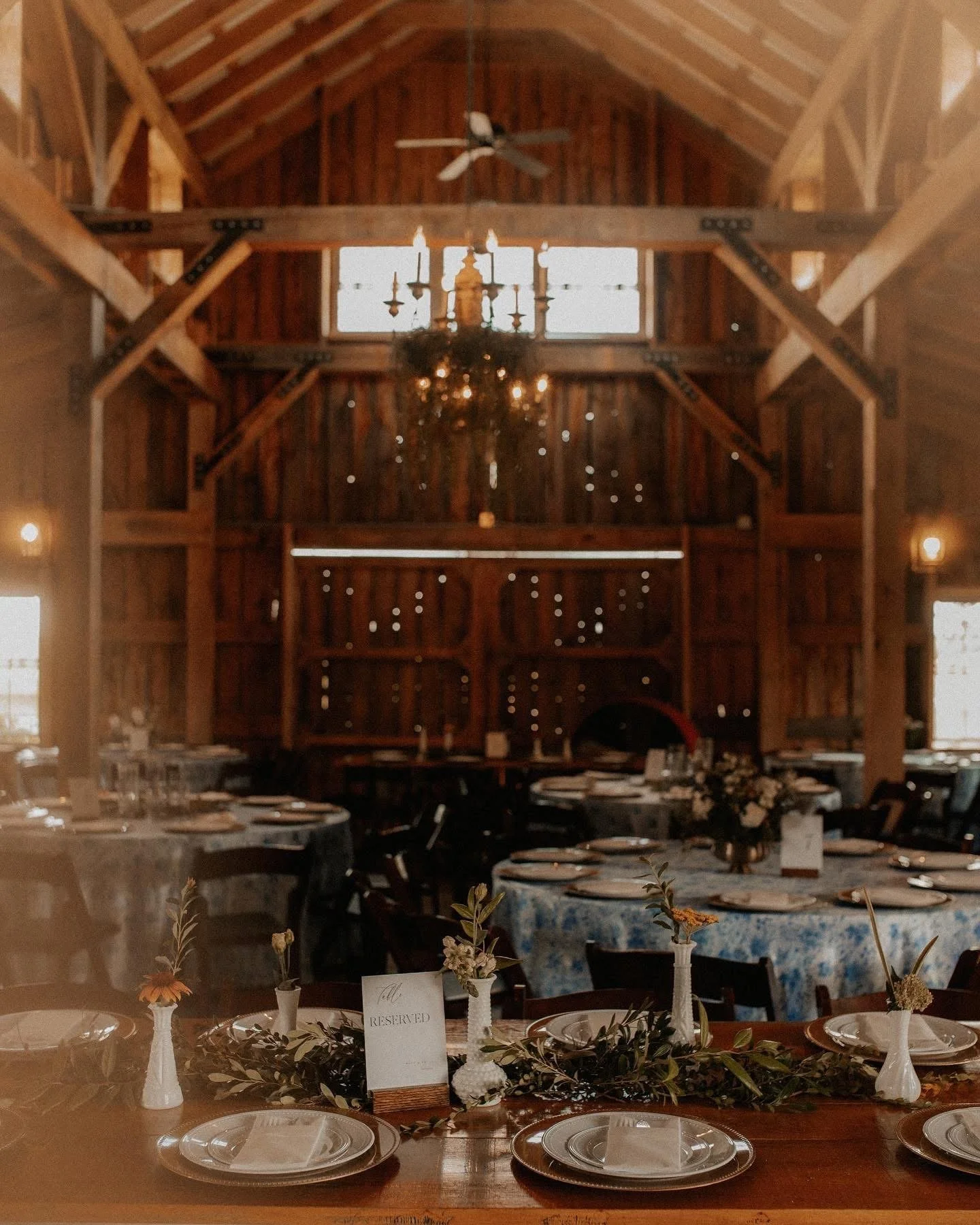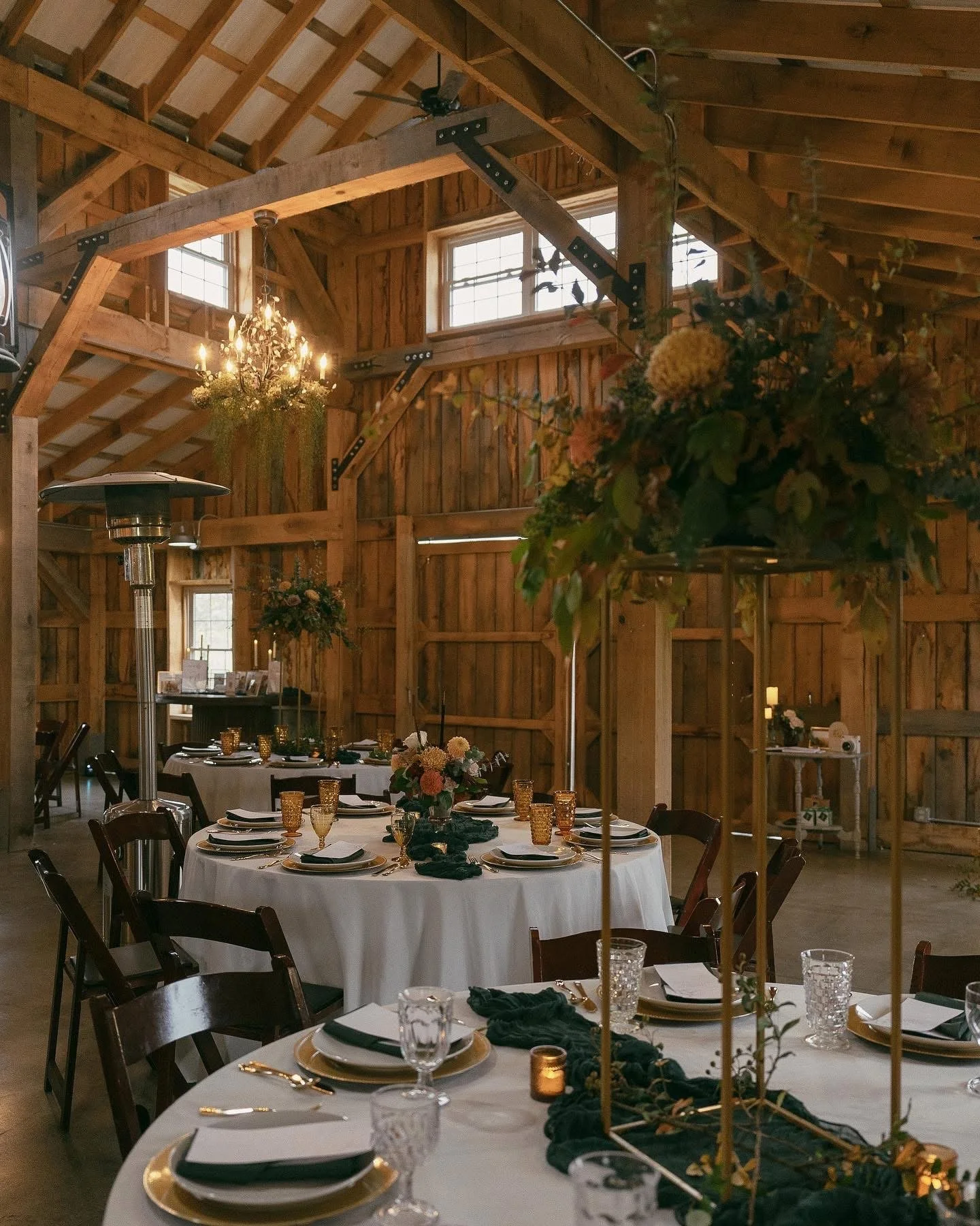 No rentals needed hereโyour reception comes complete with elegant seating and long wooden tables that photograph beautifully and feel even better in person.