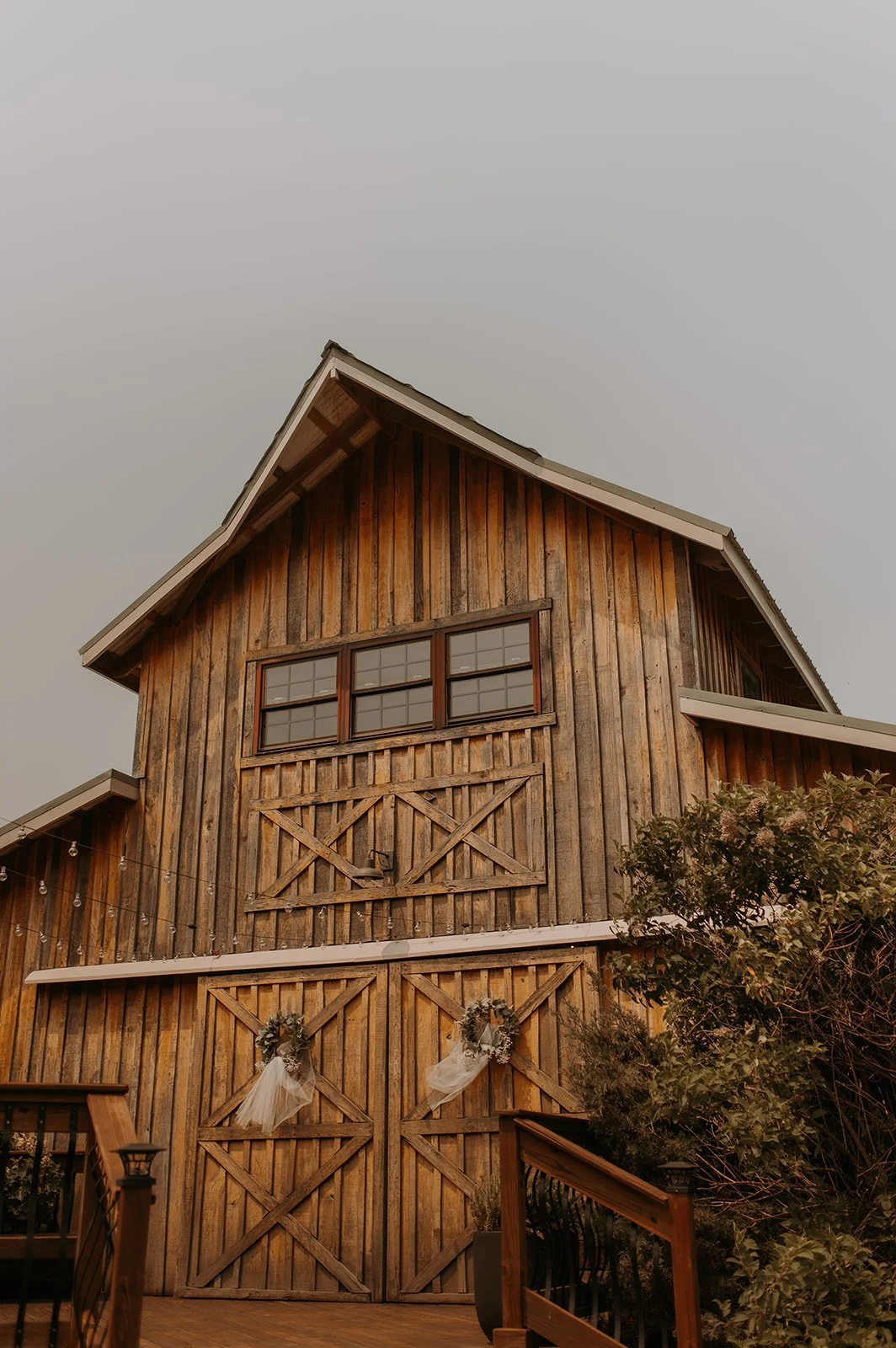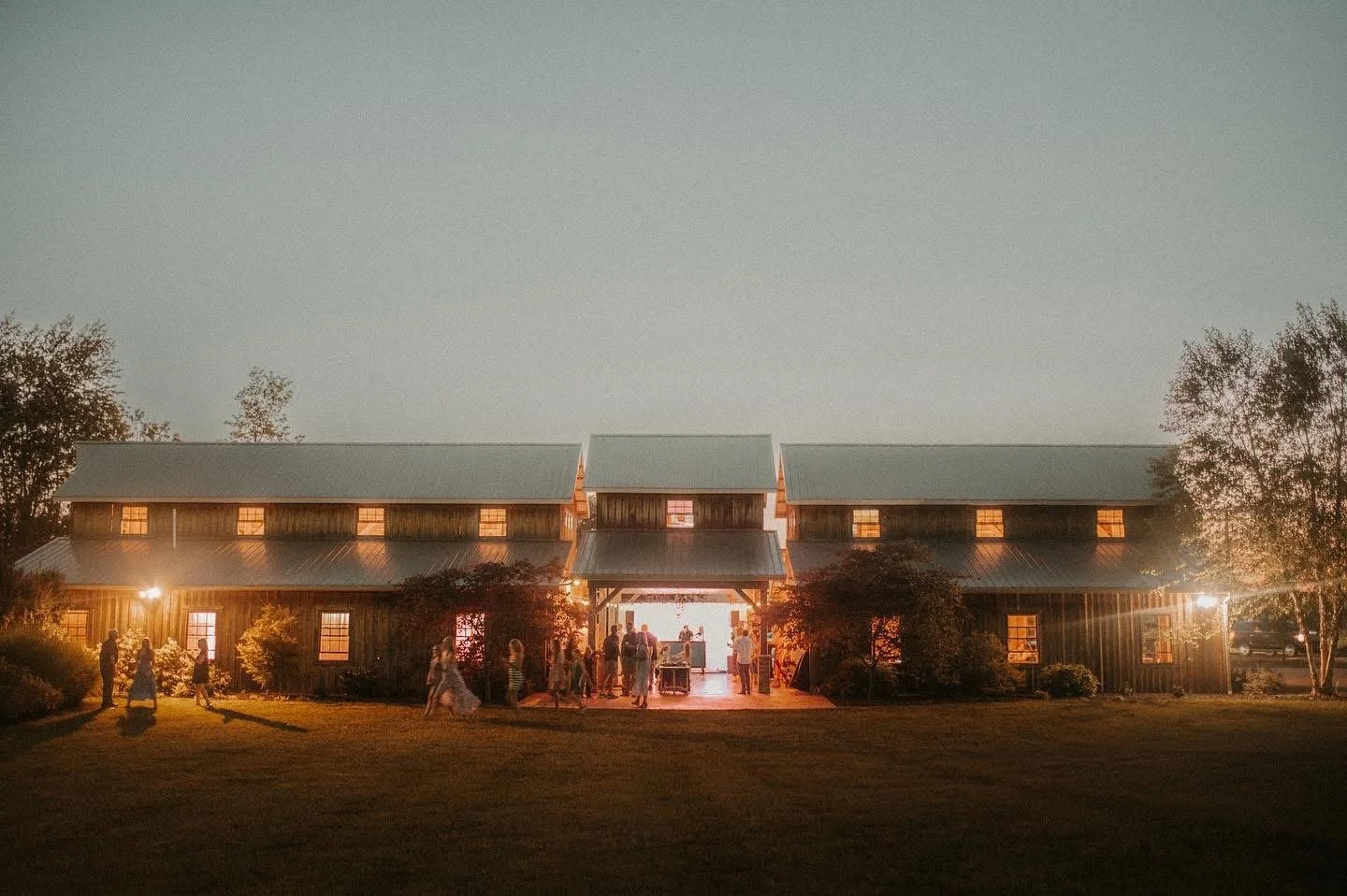 Our signature twin barns are as breathtaking as they are functionalโconnected by a dance floor and glowing with twinkle lights by night.