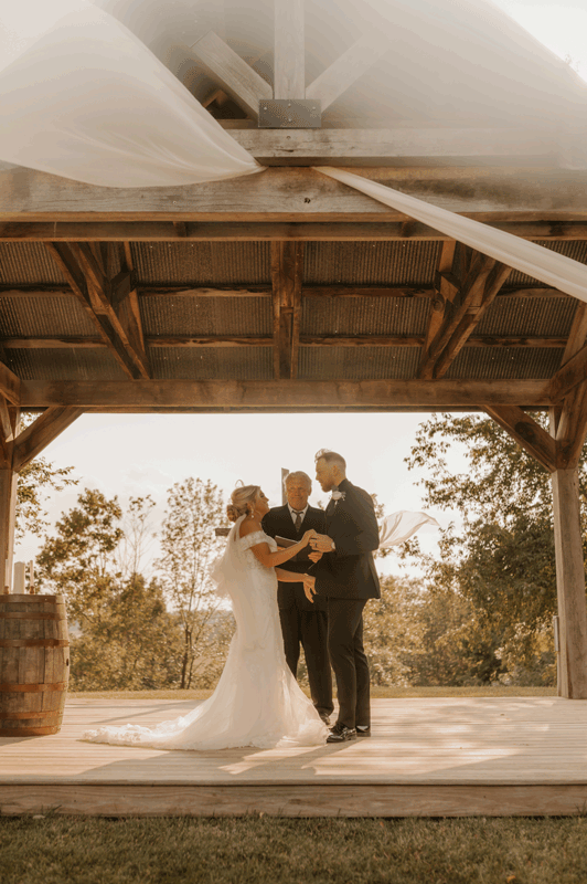 Perched above the rolling hills, the covered ceremony pavilion offers panoramic views and open skies for your vows. Itโs intimate, peaceful, and picture-perfect.